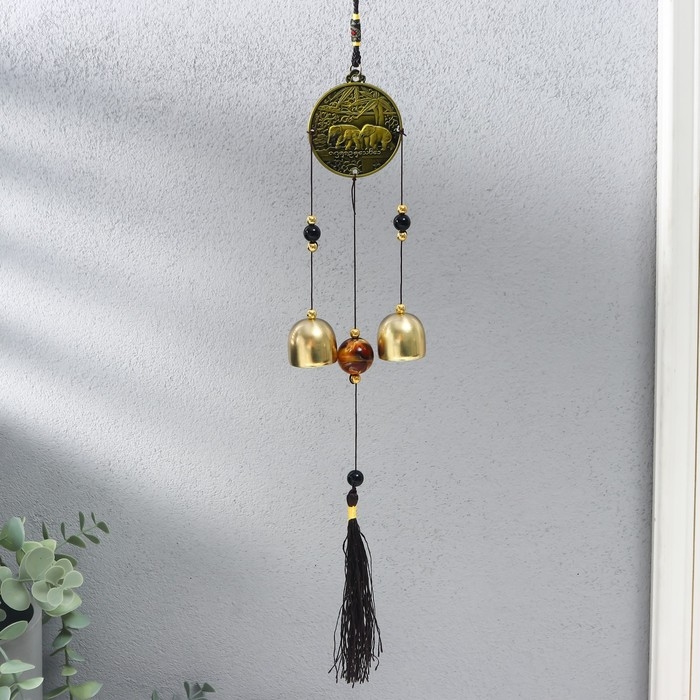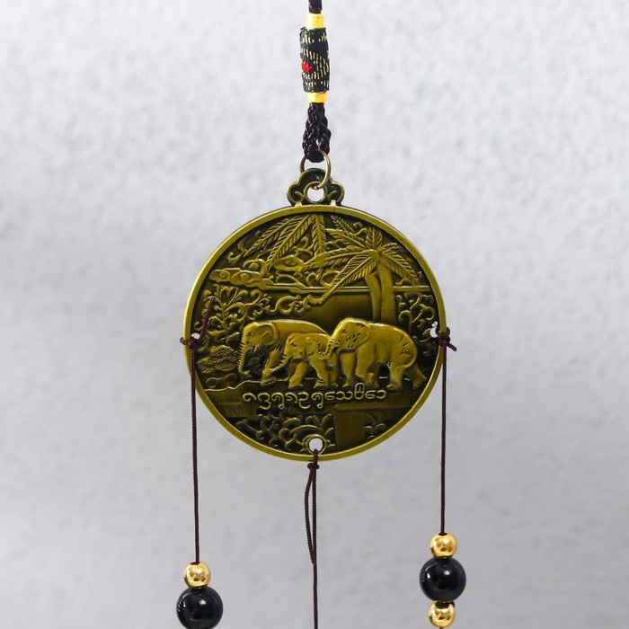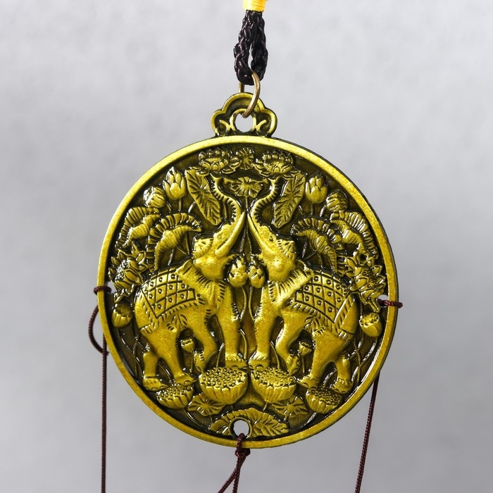 Музыка ветра металл "Слоны на монете" 2 колокольчика 37 см