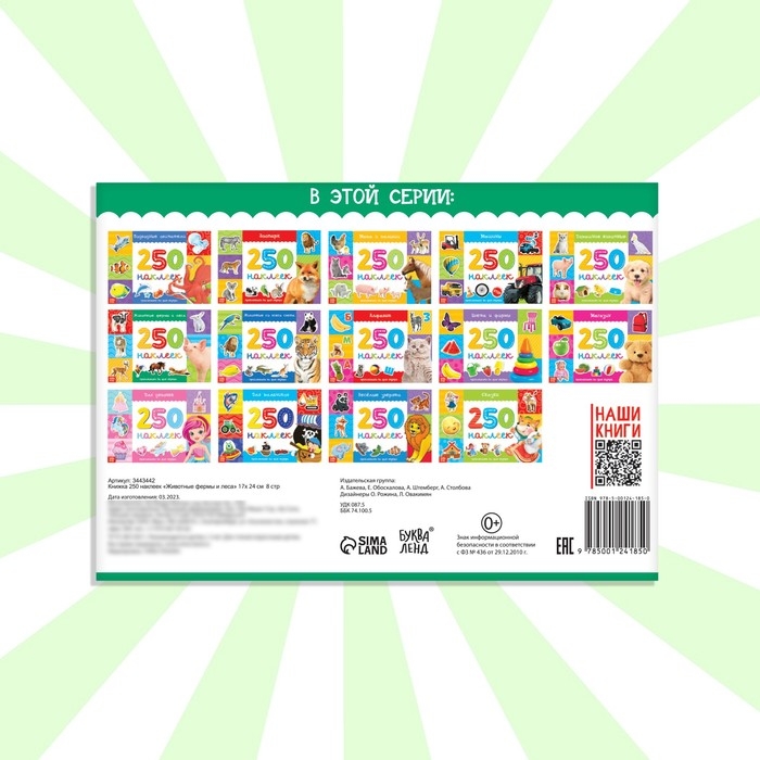 250 наклеек «Животные фермы и леса», 8 стр.