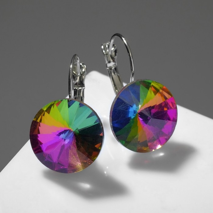 Серьги со стразами «Яркая классика», цвет бензиновый в серебре, d=1,6 см