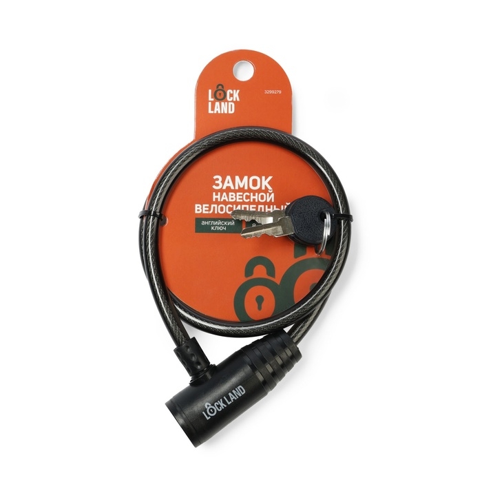 Замок навесной велосипедный LOCKLAND, 8х650 мм, английский ключ с пластиковой ручкой