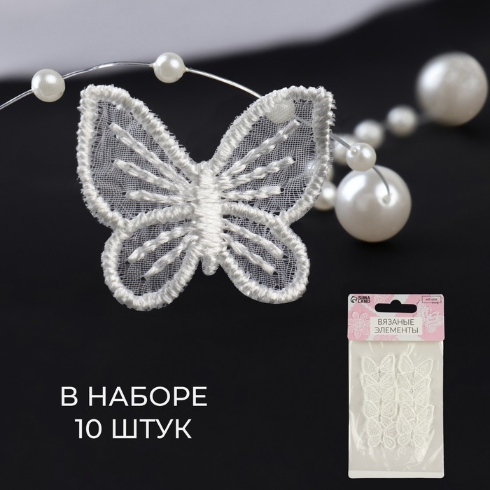 Вязаные элементы «Бабочки», 2,5 × 2,5 см, 10 шт, цвет белый