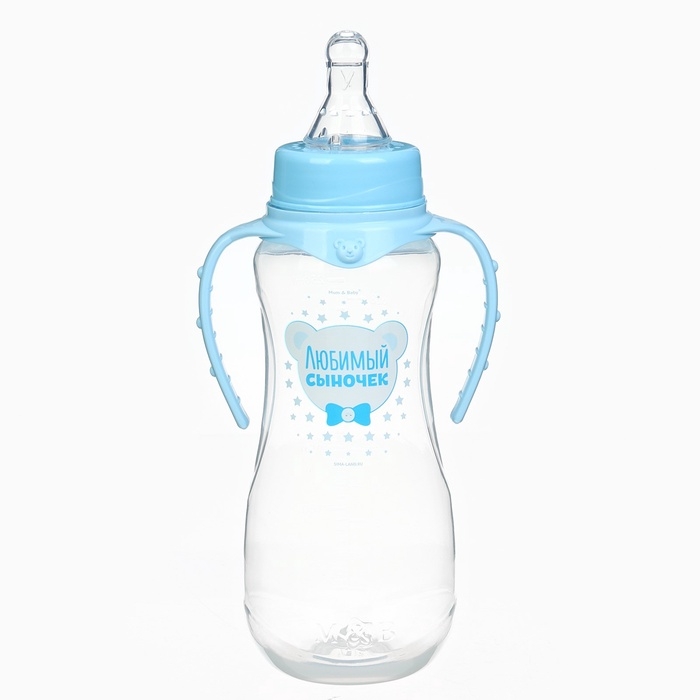 Бутылочка для кормления «Любимый сыночек», классическое горло, приталенная, с ручками, 250 мл., от 0 мес., цвет голубой