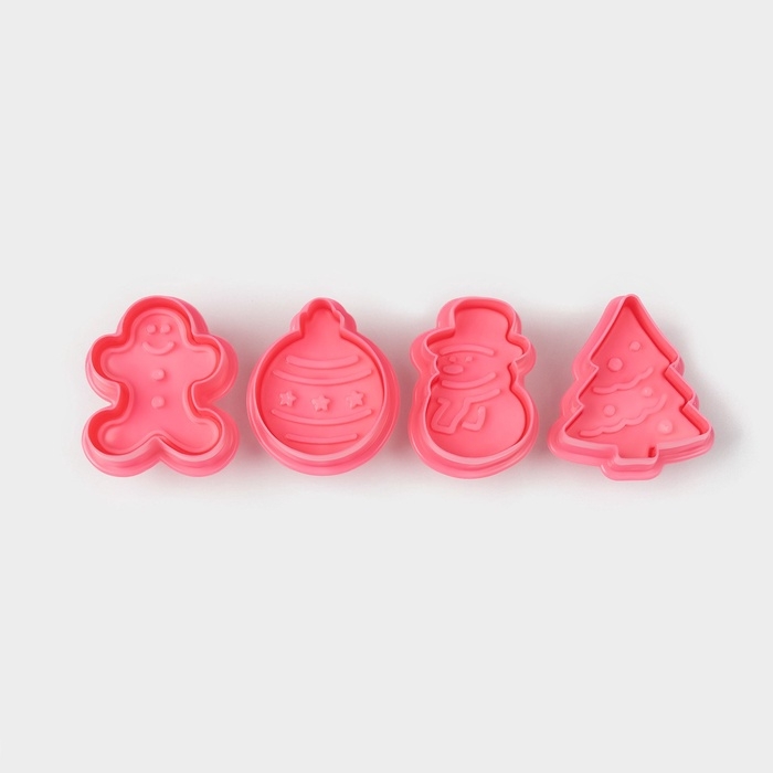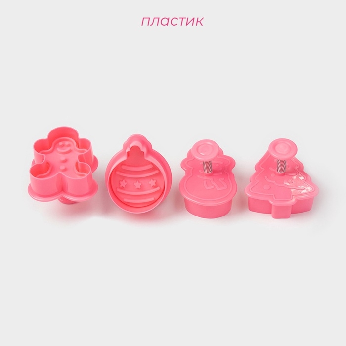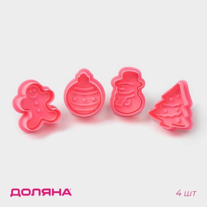 Плунжеры кондитерские Доляна «Новый год», набор 4 шт, пластик, розовые
