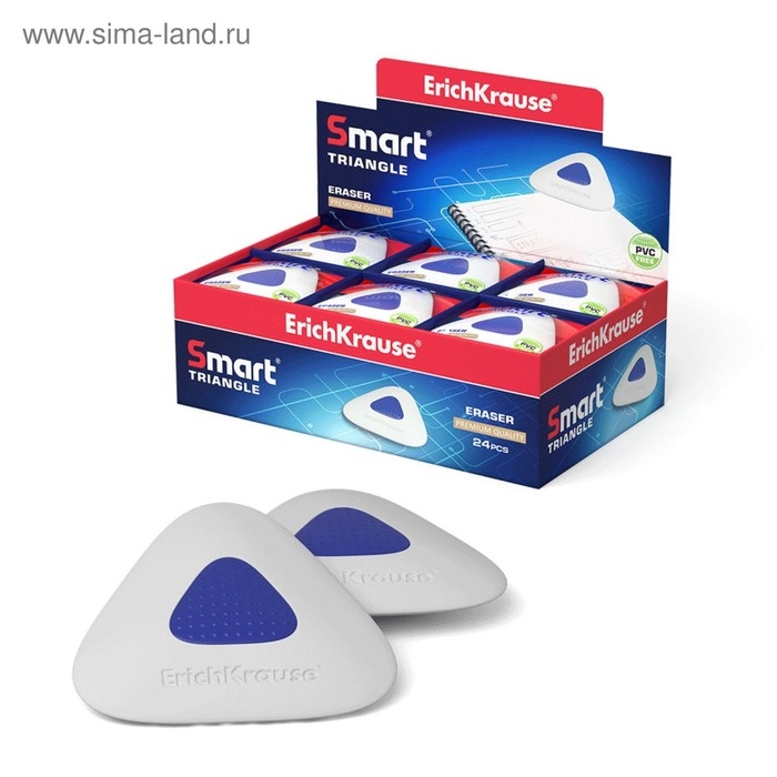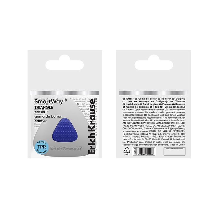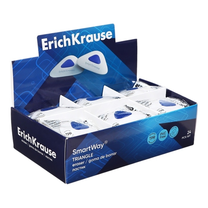Ластик с держателем ErichKrause "SmartWay Triangle", треугольный, средней жёсткости, гипоаллергенный, в пакете с европодвесом