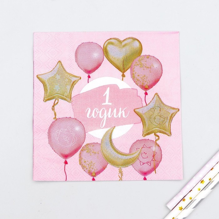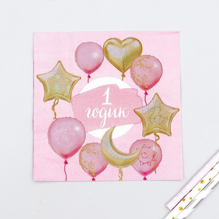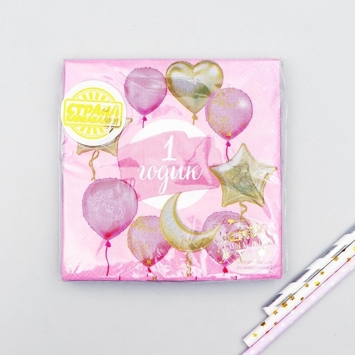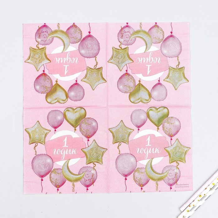 Салфетки бумажные «1 годик», малышка, 25х25 см, набор 20 шт.