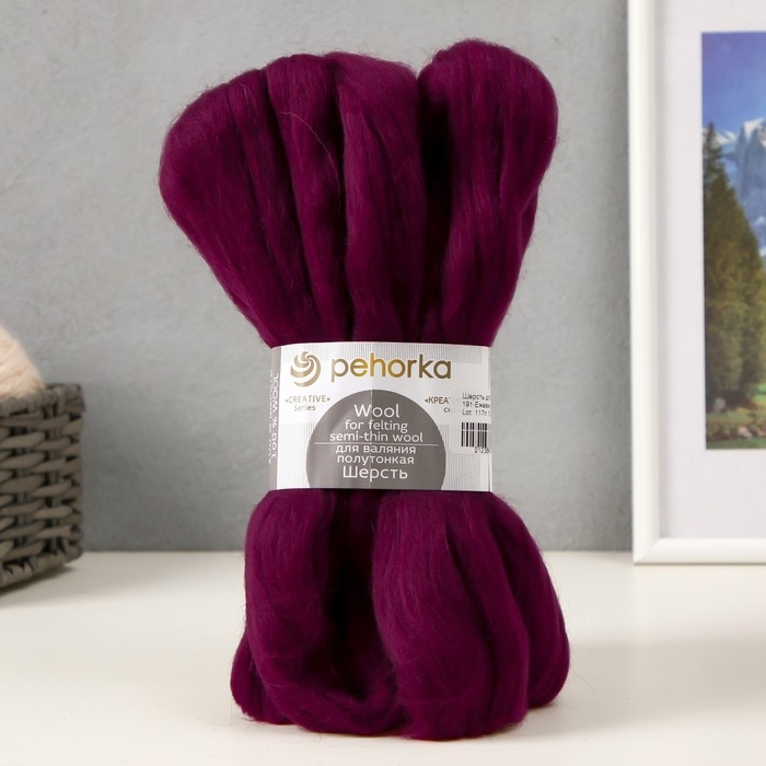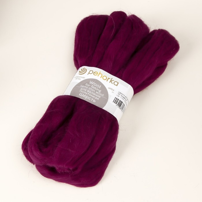Шерсть для валяния 100% полутонкая шерсть 50гр (191 ежевика)