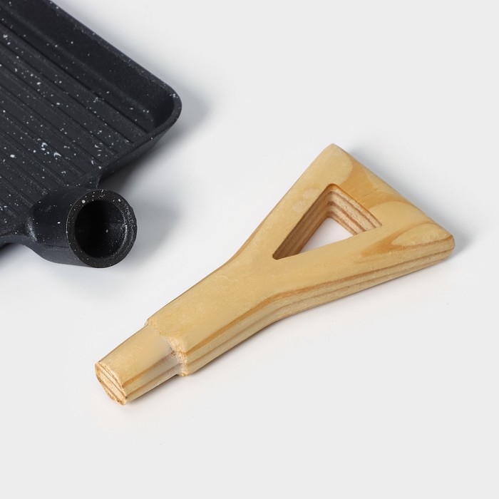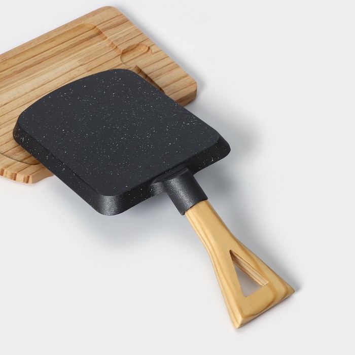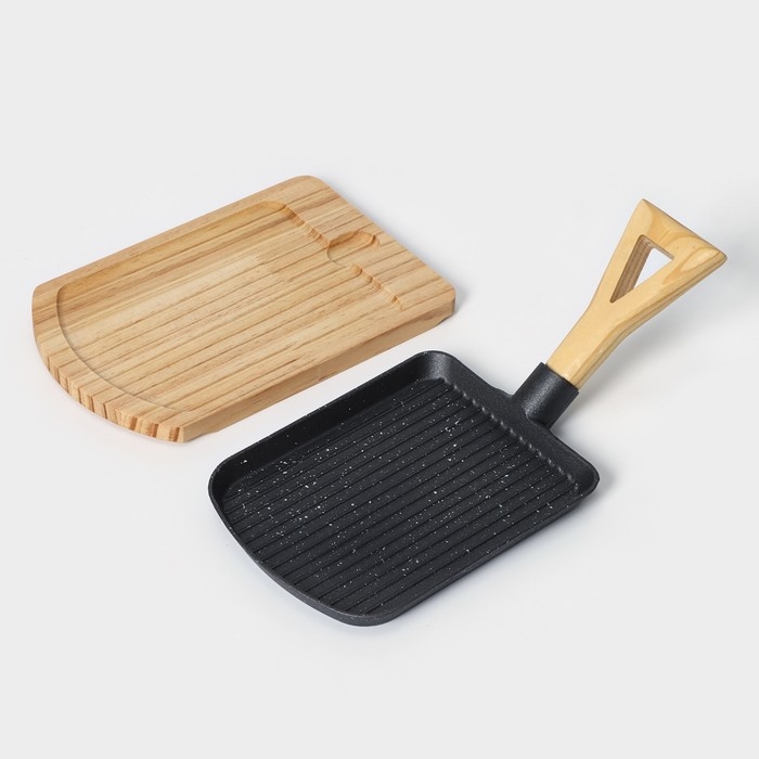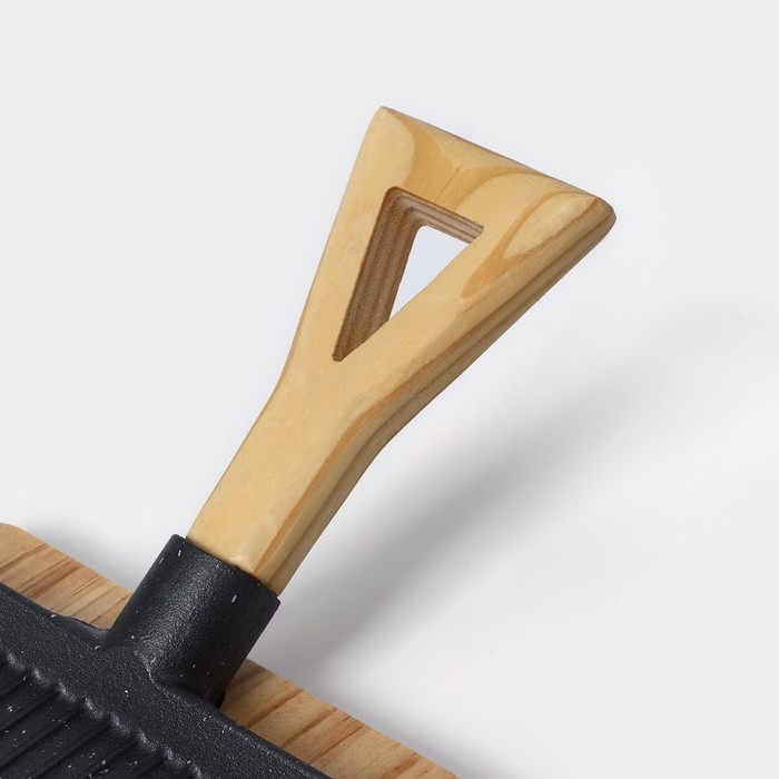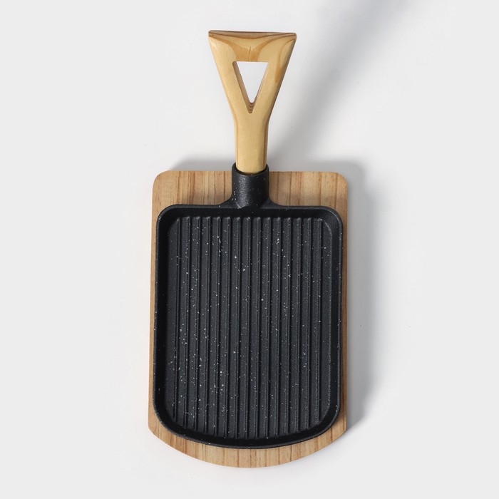 Сковорода чугунная на деревянной подставке «Лопата. Гриль», 23×18 см, цвет чёрный