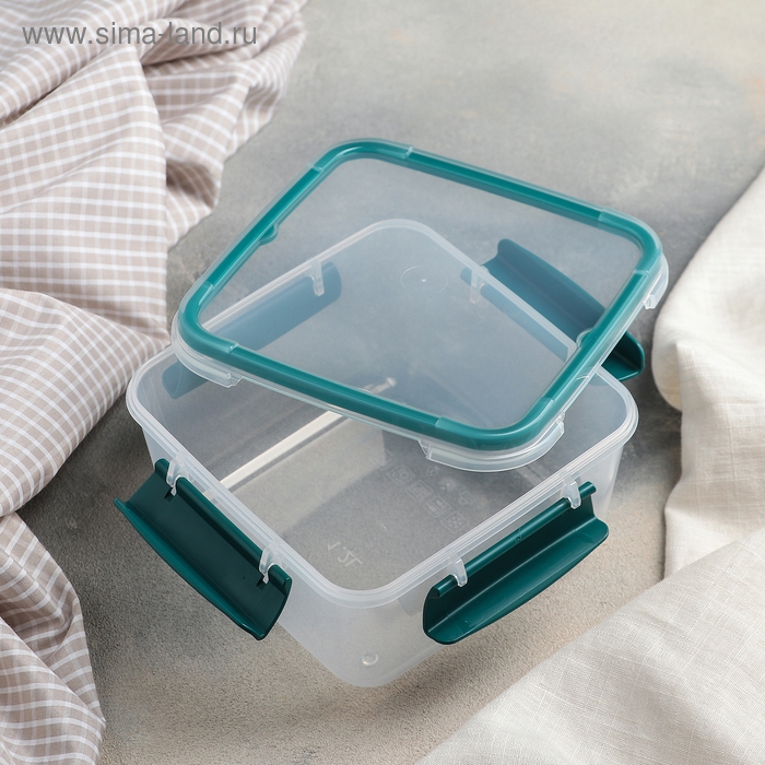 Набор контейнеров пищевых Доляна, 3 шт: 1 л, 18,5×12×7 см, прямоугольные, прозрачные, крышка зелёная