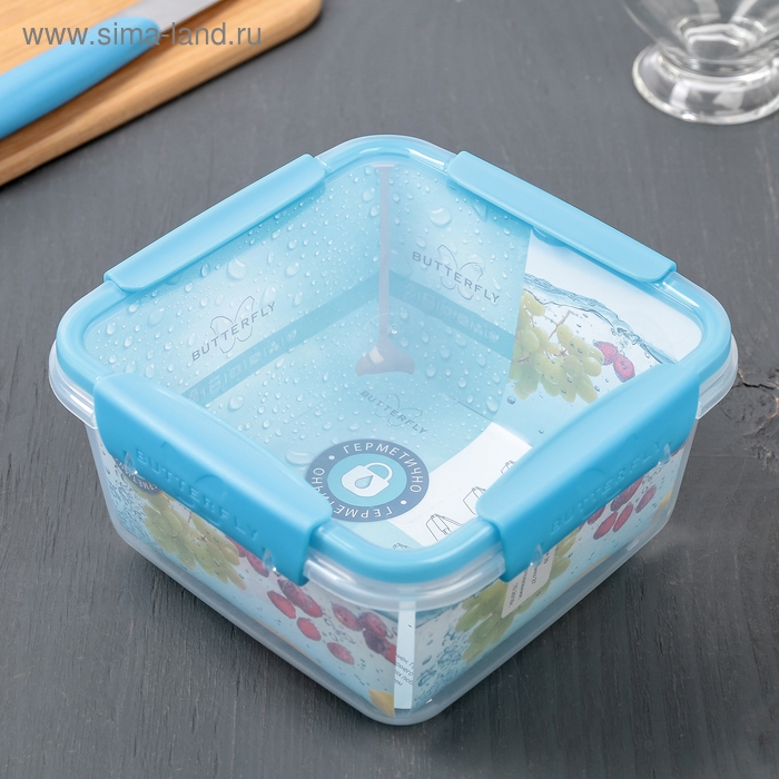 Контейнер пищевой герметичный Butterfly, 1,2 л, пластик, прозрачный, крышка МИКС