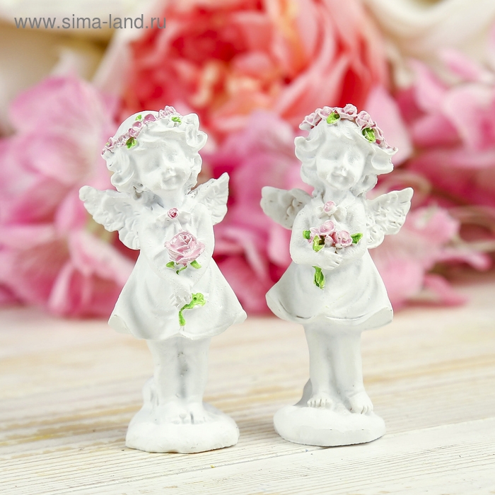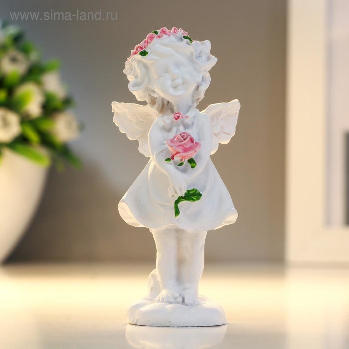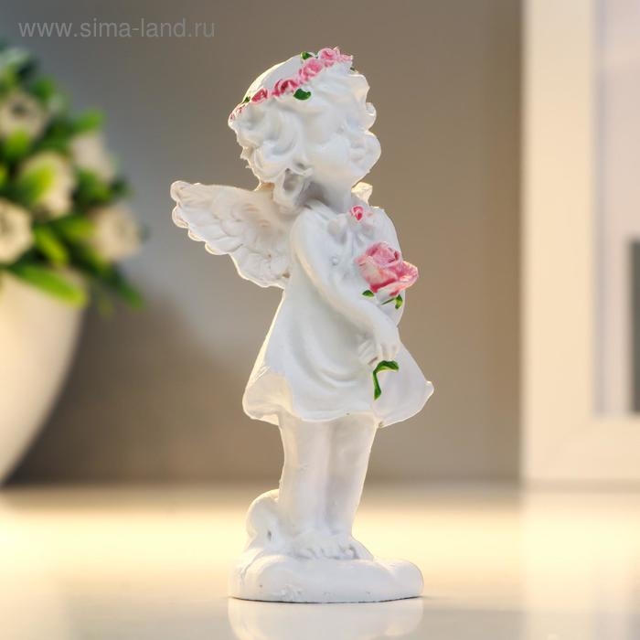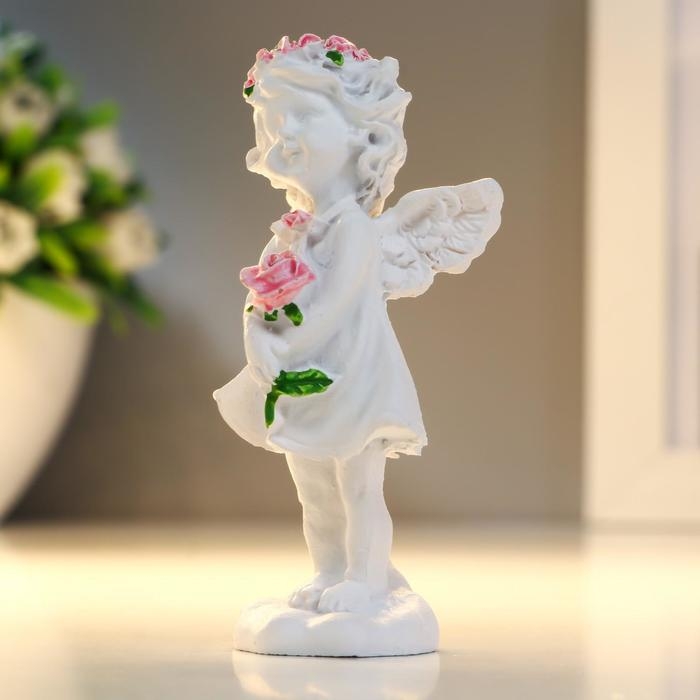 Сувенир полистоун "Ангел-девочка в розовом венке с розой" МИКС 7,8х3,8х2,5 см