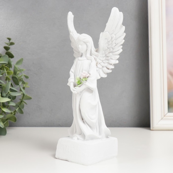 Сувенир полистоун "Белоснежный ангел-девушка в платье, с розой" 21х10,5х6,5 см