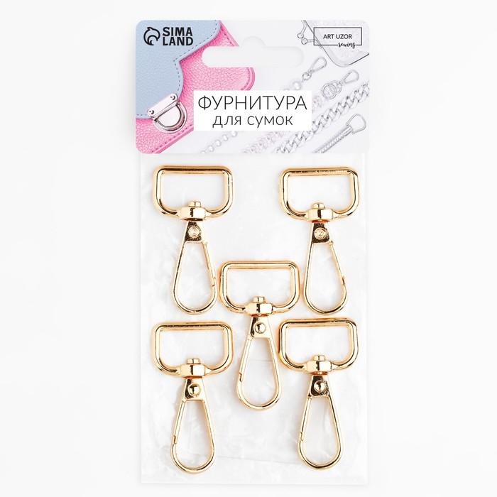 Карабин металлический, 45 × 25 мм / 20 × 3 мм, 5 шт, цвет золотой