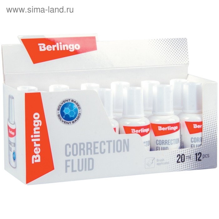 Корректирующая жидкость 20 мл Berlingo, на химической основе, с кисточкой