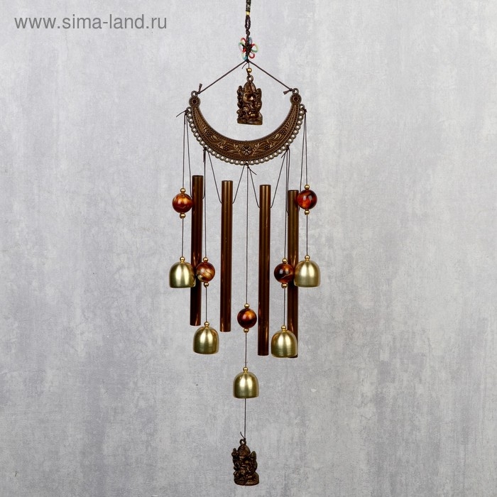 Музыка ветра металл "Ганеша" 4 трубки, 5 колокольчиков 65 см