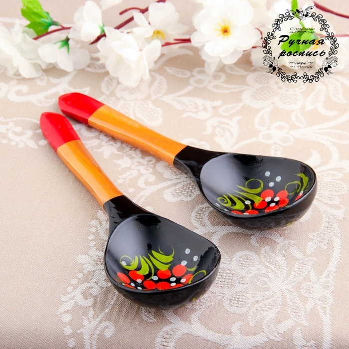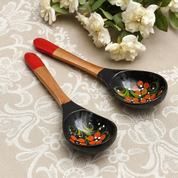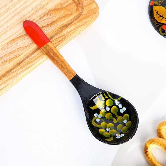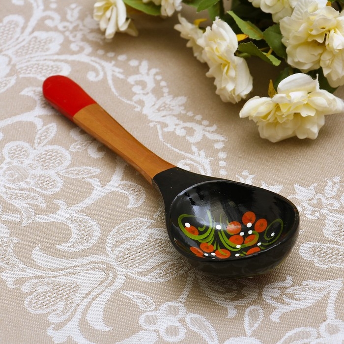 Ложка «Чернушка», салатная, 6×21, хохлома