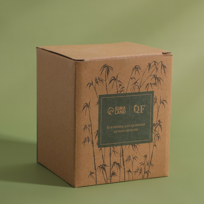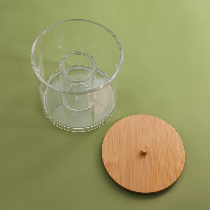 Органайзер для хранения ватных палочек «BAMBOO», с крышкой, d = 9,5 × 9,7 см, в картонной коробке, цвет прозрачный/коричневый