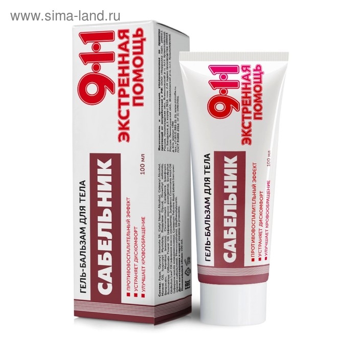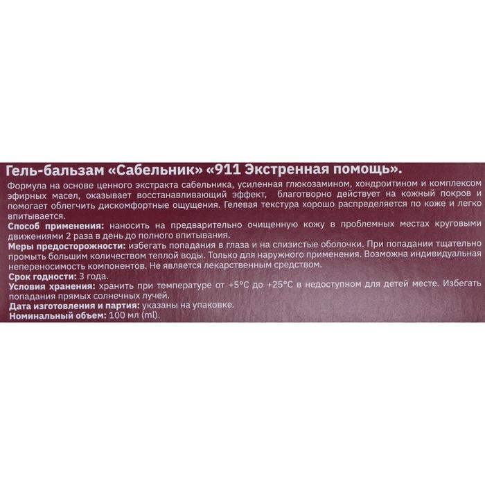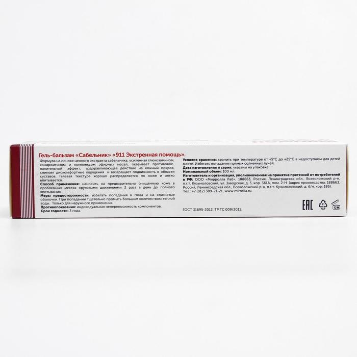 Гель-бальзам для тела 911 «Сабельник» при боли в суставах и мышцах, 100 мл
