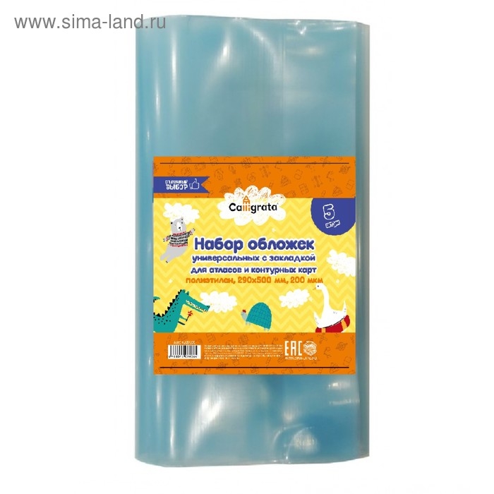 Набор обложек ПЭ 5 штук, 290 x 500 мм, 200 мкм, для атласов и контурных карт, универсальная, с закладкой, МИКС