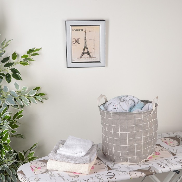 Корзина бельевая текстильная Доляна «Клетка», 30×30×30 см, цвет серый
