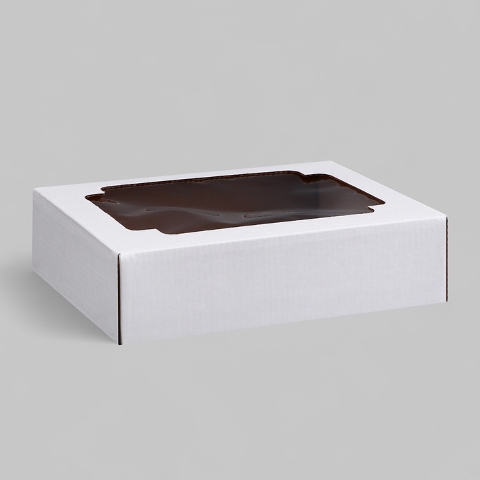 Коробка сборная без печати крышка-дно белая с окном 18 х 15 х 5 см