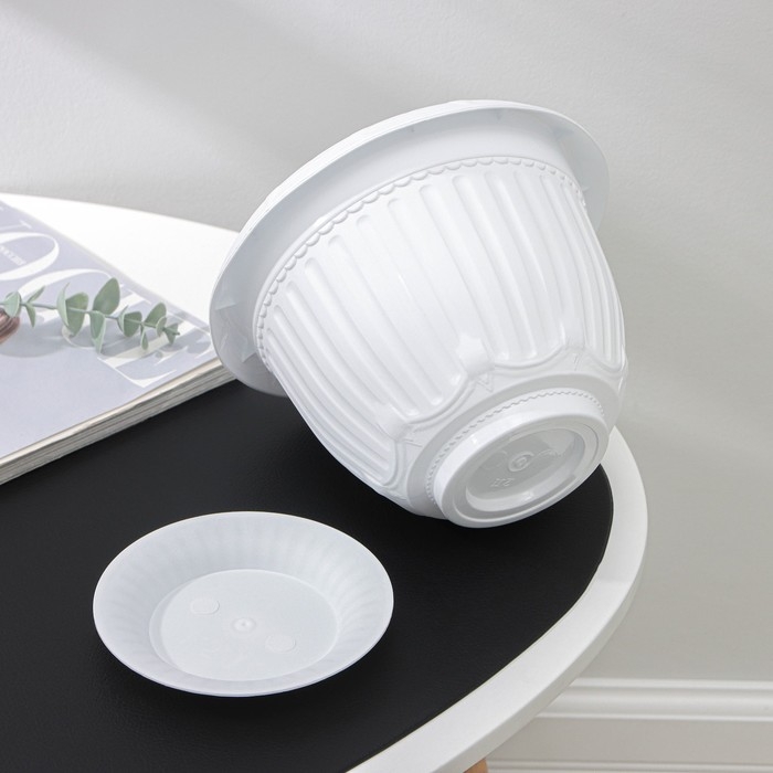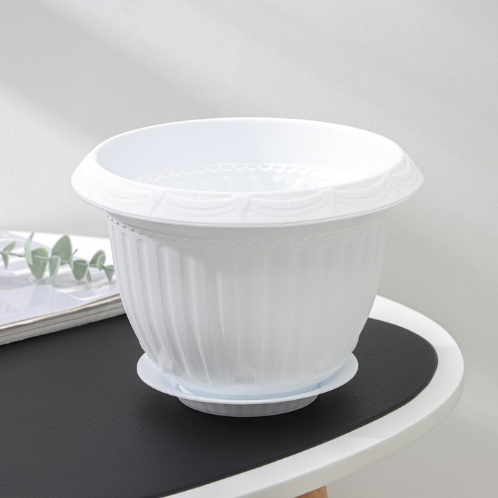 Горшок для цветов с поддоном «Байкал», 2 л, пластиковый, белый