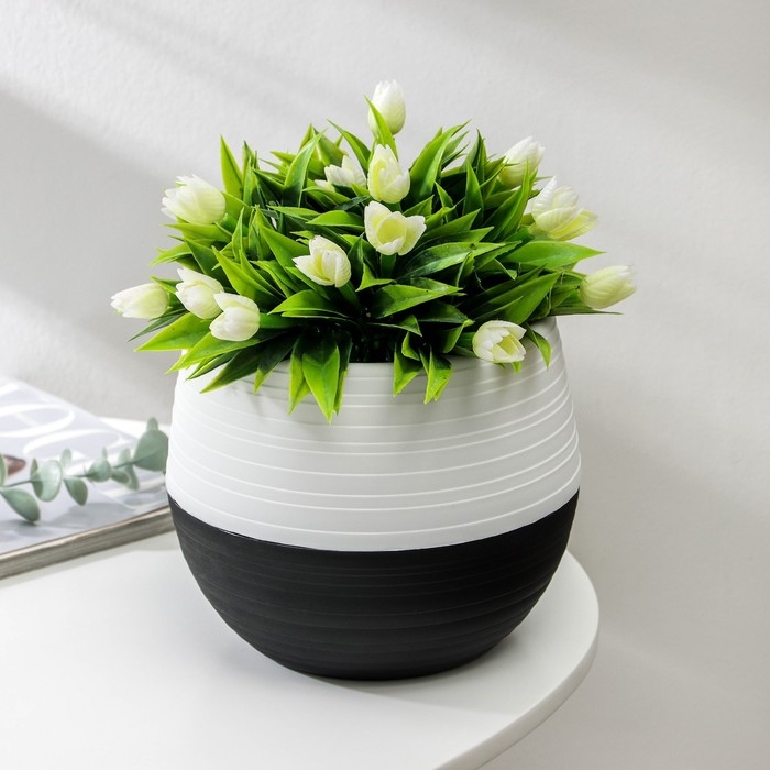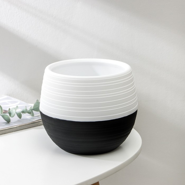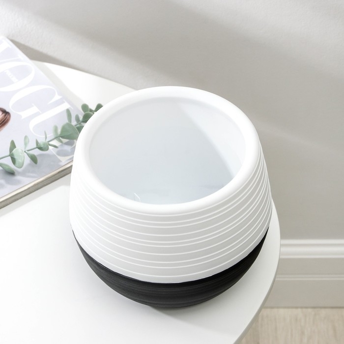 Горшок для цветов с поддоном «Дуэт», 1,5 л, пластиковый, чёрно-белый