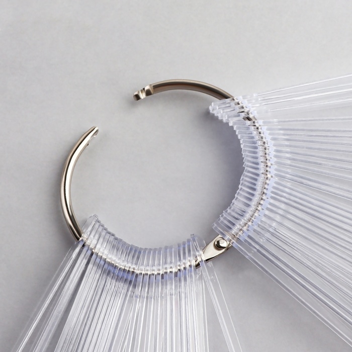 Элегантная овальная форма и прозрачный цвет каждой типсы позволяют точно оценить оттенки, их интенсивность и гармонию с кожей клиента, что делает процесс подбора цветов быстрым и легким. Благодаря кольцевой конструкции палитра компактна и удобна в использовании, её легко транспортировать и хранить.