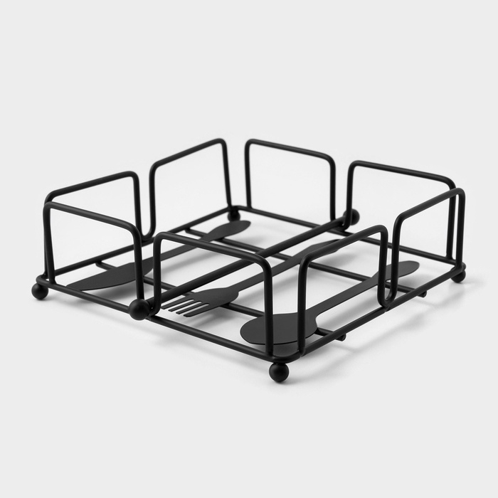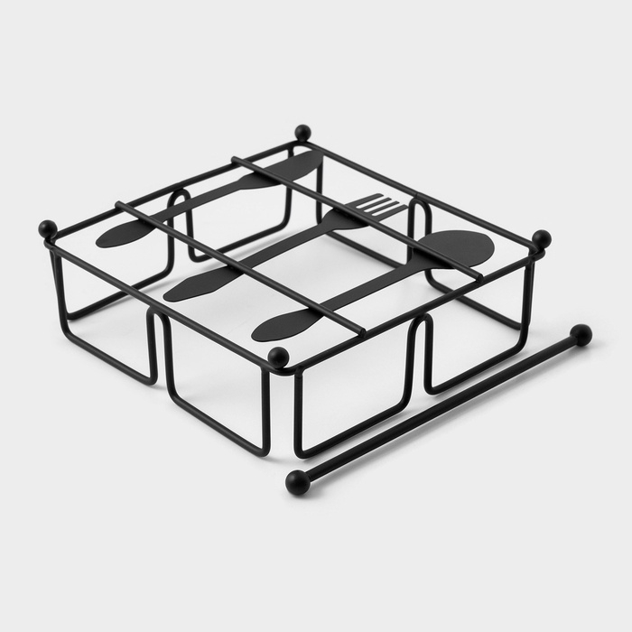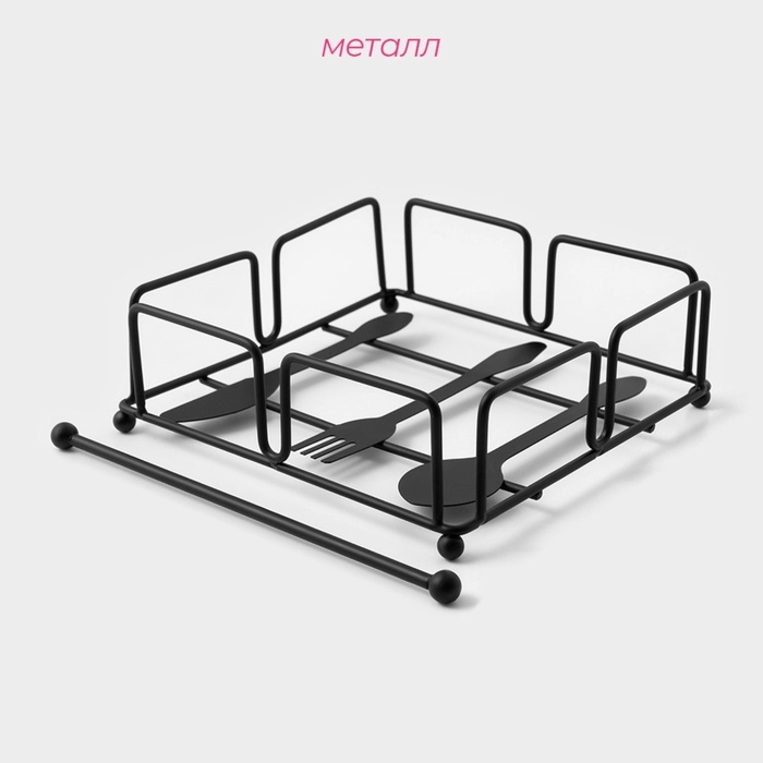 Салфетница Доляна «Приборы», с держателем, 17,5×18×6 см, цвет чёрный
