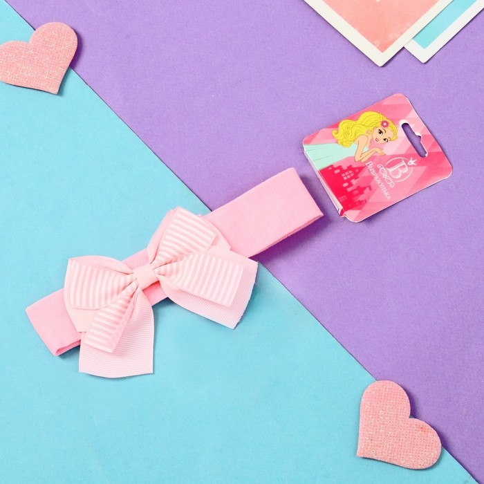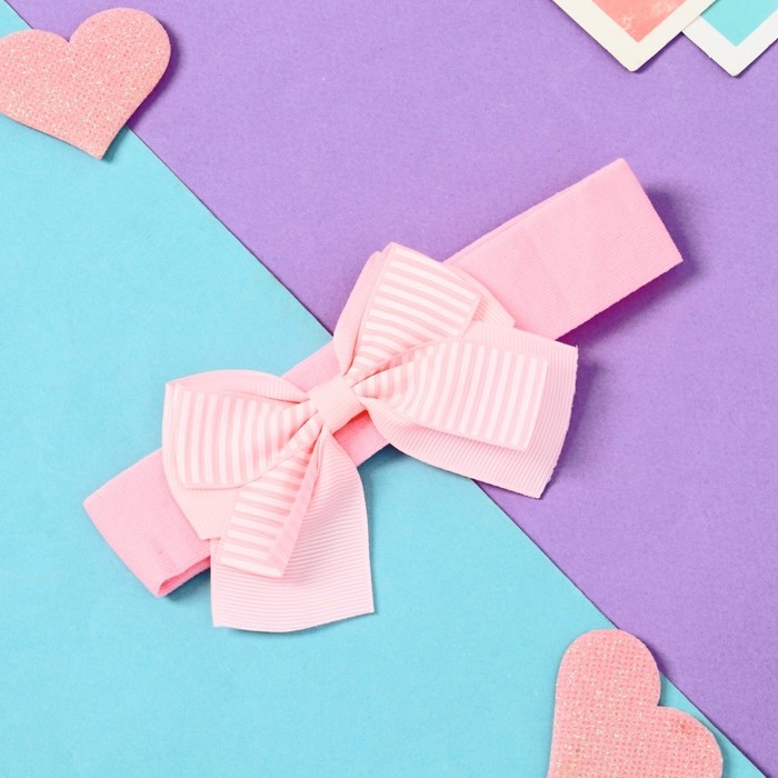 Повязка для волос "Бант" полоски, 3х17 см, розовый