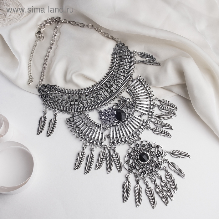 Колье «Одиссея» перья, цвет чёрный в чернёном серебре, 42 см