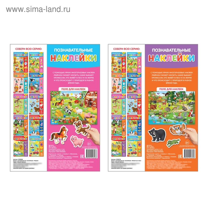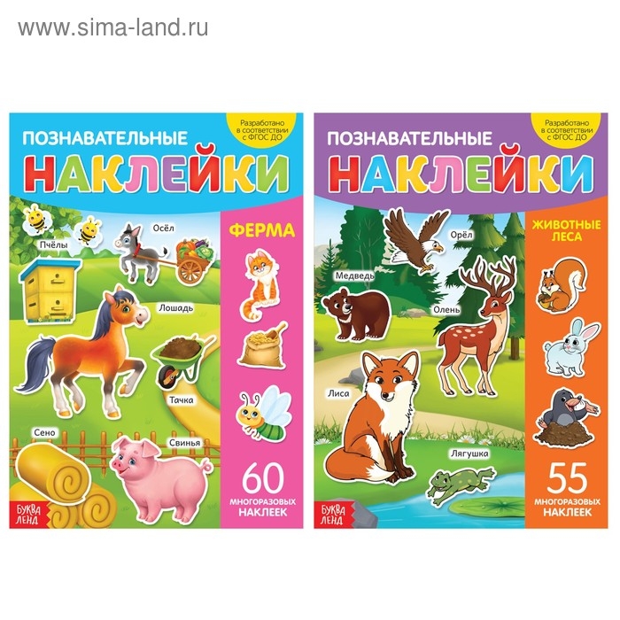 Набор книг заинтересует всех любителей животных. Ведь в них много наклеек с обитателями леса, фермы и не только!
