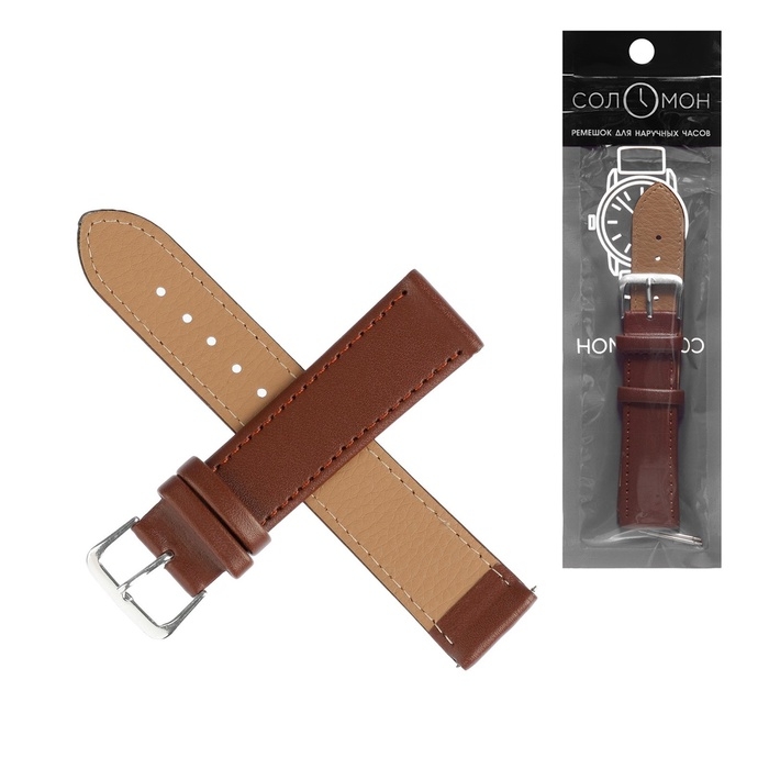 Ремешок для часов "Соломон", 20 мм, натуральная кожа, l-20 см, коричневый