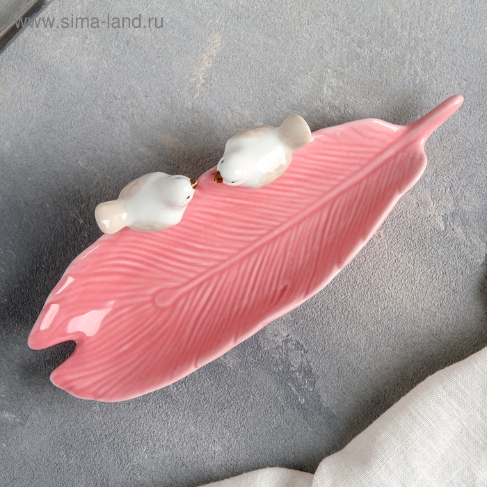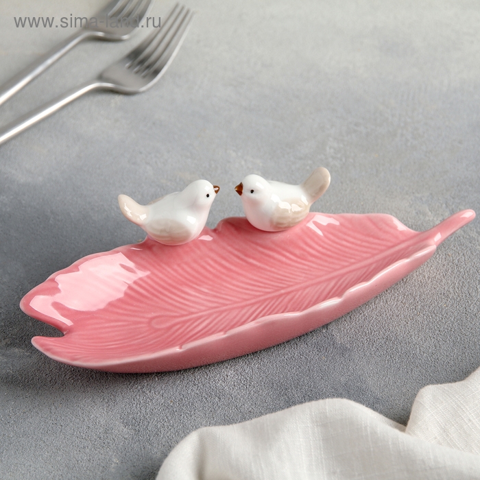 Блюдо керамическое «Птички на листочке», 21×8×5 см, цвет розовый