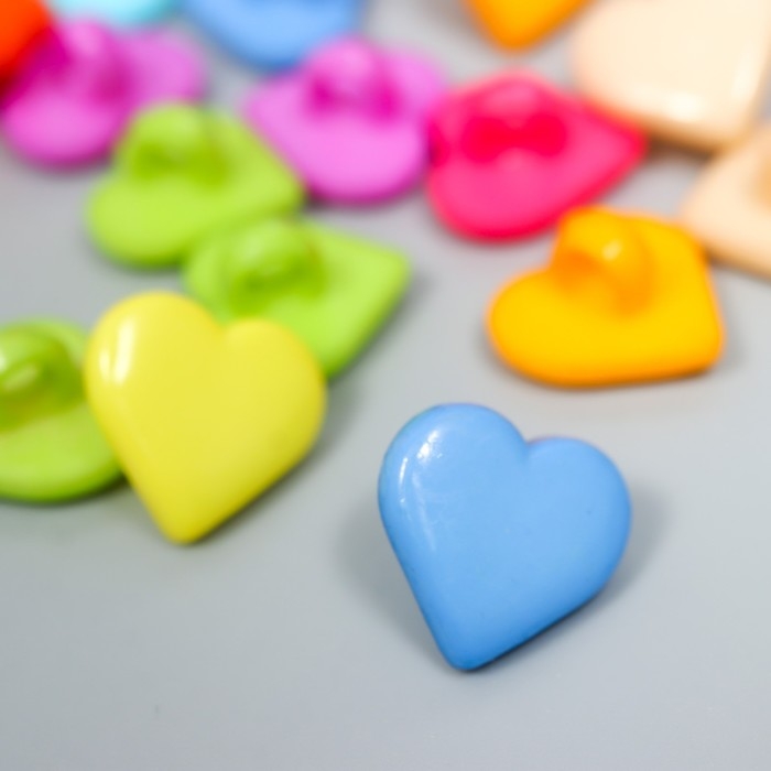 Пуговицы пластик для творчества на ножке "Цветные сердечки" набор 60 шт 1,2х1,2 см