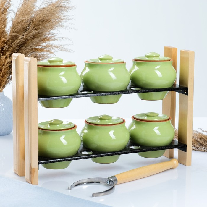 Набор "Вятская керамика №2" 6х0,5 + ухват + полка, салатовый
