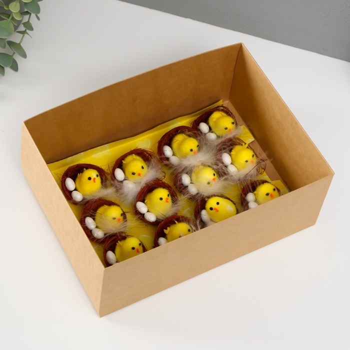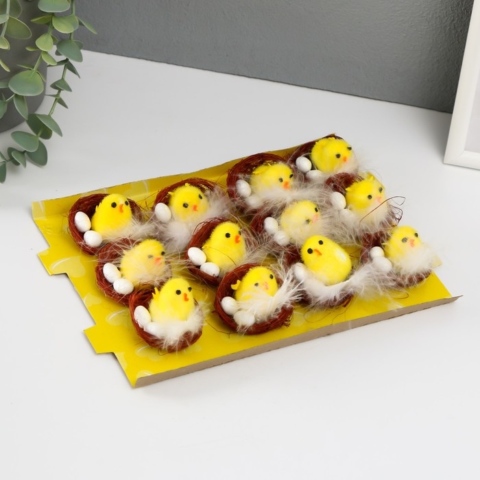 Сувенир пасхальный "Цыплёнок в гнёздышке с яичками" набор 12 шт 4х5х5 см