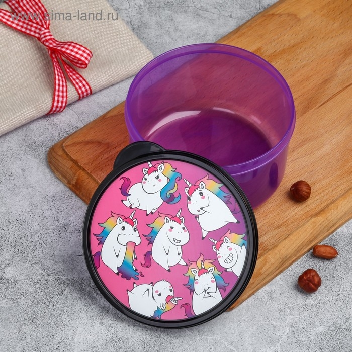Ланч-бокс круглый FoodVibes «Единороги», 500 мл