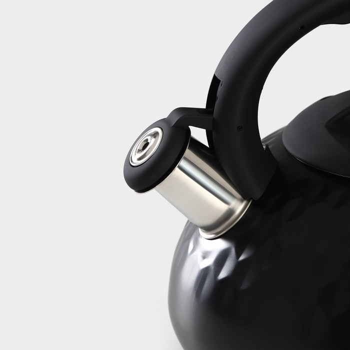 Чайник со свистком из нержавеющей стали Magistro Glow, 3 л, индукция, ручка soft-touch, цвет чёрный