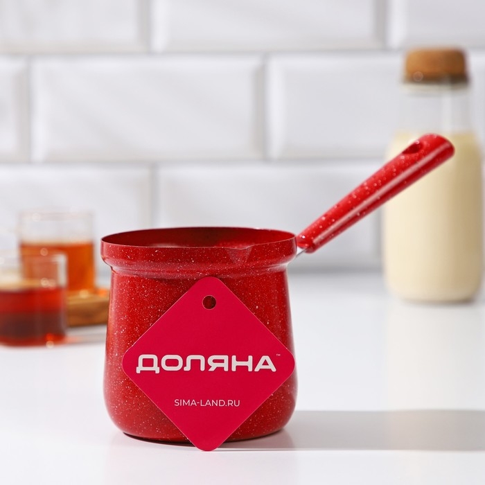 Турка Доляна «Мрамор рэд», 500 мл, d=9 см, 19,5×9×14 см, пластиковая ручка, антипригарное покрытие, индукция, цвет красный