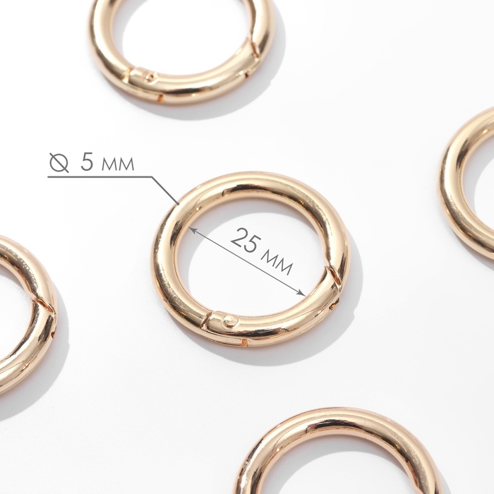 Кольцо-карабин, d = 25/35 мм, толщина - 5 мм, 5 шт, цвет золотой