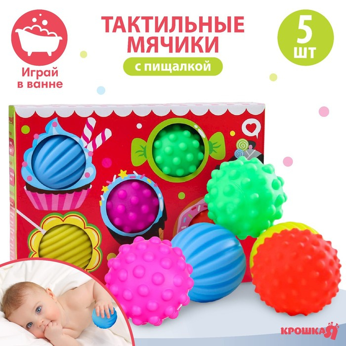 Набор развивающих тактильных мячиков «Сладости», с пищалкой, 5 шт, Крошка Я