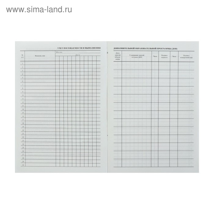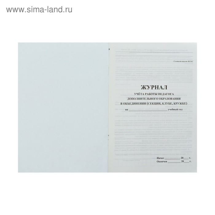 Журнал учёта работы педагога дополнительного образования в объединении (секции, клубе, кружке) А4, 20 листов, обложка офсет 120 г/м², блок писчая бумага 60 г/м²