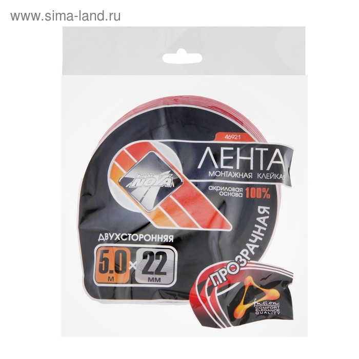 Клейкая лента Nova Bright-fusion, двусторонняя, акриловая красный + прозрачный, 22 мм х 5 м