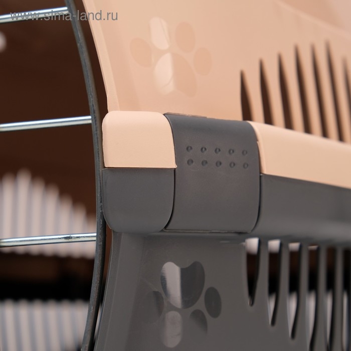 Переноска для животных до 12 кг "Пижон" 49х33х32см, металлическая дверь, бежево-серая