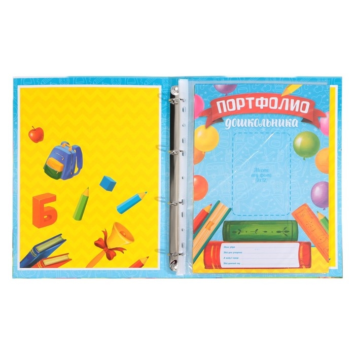 Папка школьная на кольцах «Портфолио дошкольника», 6 листов-разделителей, 24,5 х 32 см.