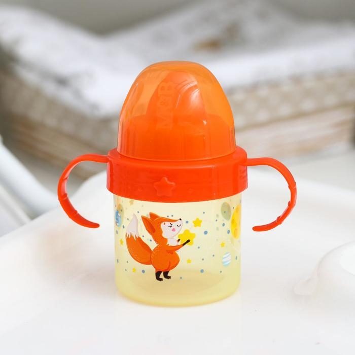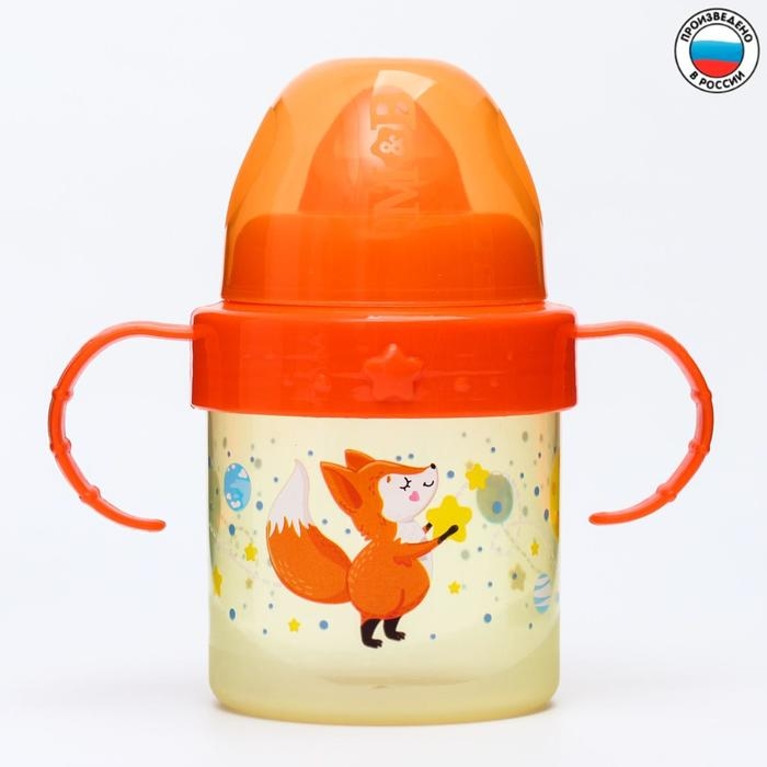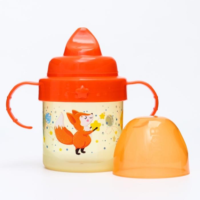 Поильник детский с твёрдым носиком «Лисята. Мамы и малыши», 140 мл., с ручками, цвет оранжевый