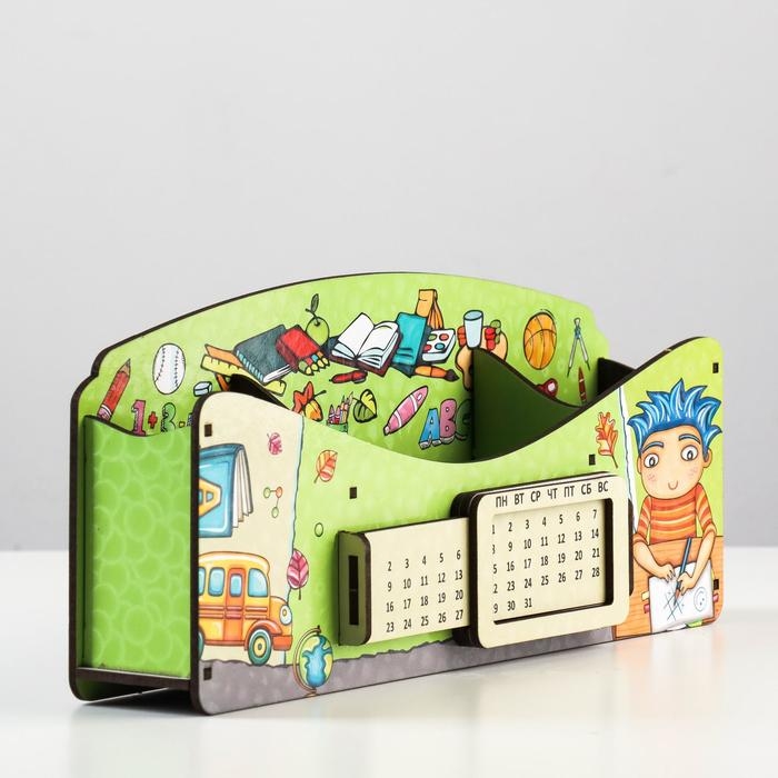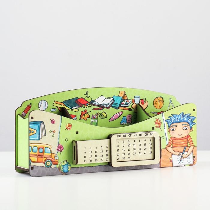 Органайзер для канцелярских предметов "Школа удобств", вечный календарь, цветной, зелёный