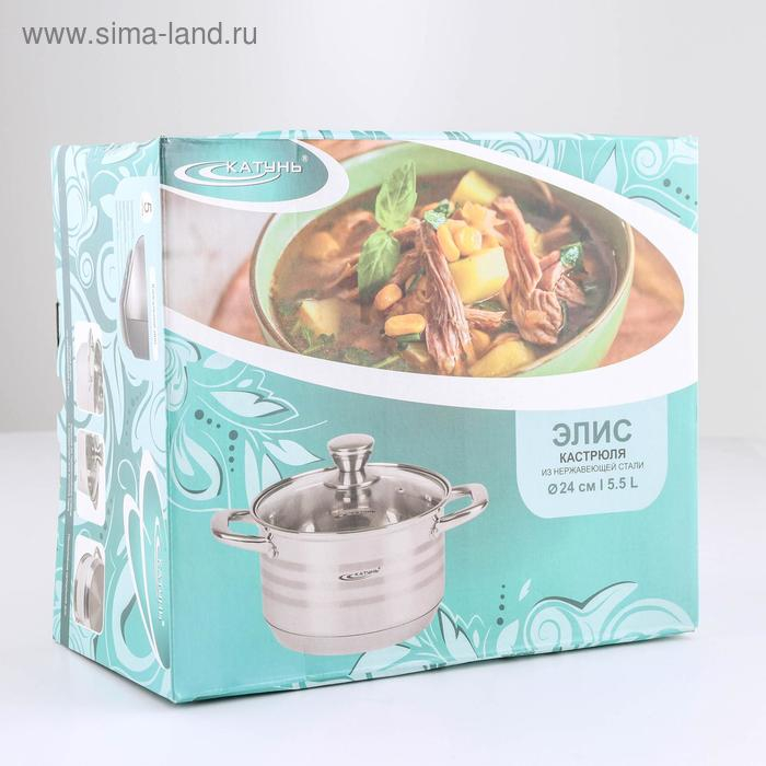 Кастрюля «Элис», 5,5 л, d=24 см, стеклянная крышка, капсульное дно, индукция