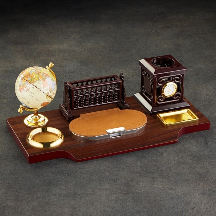 Набор настольный 6в1 (часы, блок д/ бумаги,каранд-ца, визитица,штурвал,скреп-ца ) 40*20*15см
