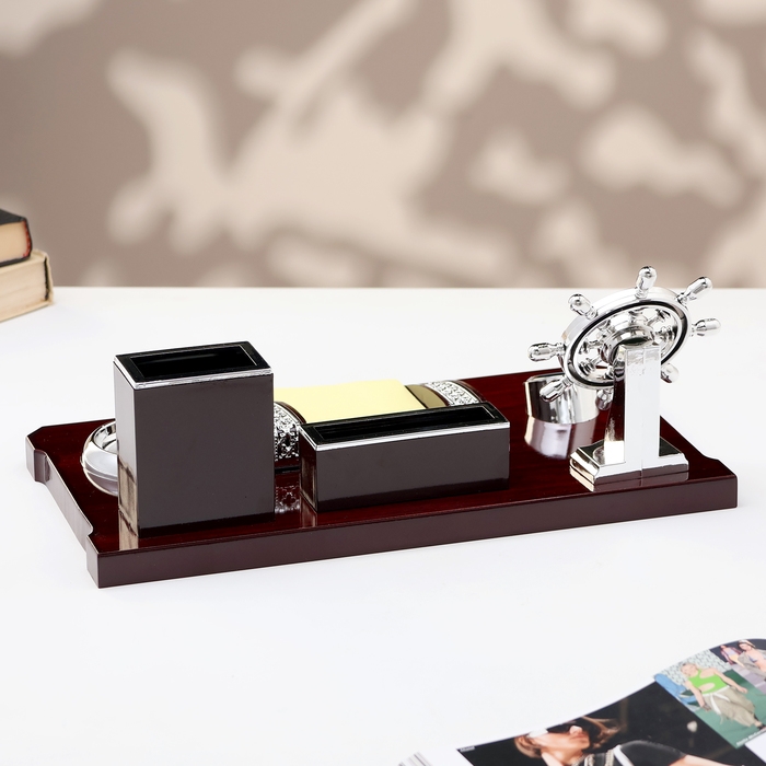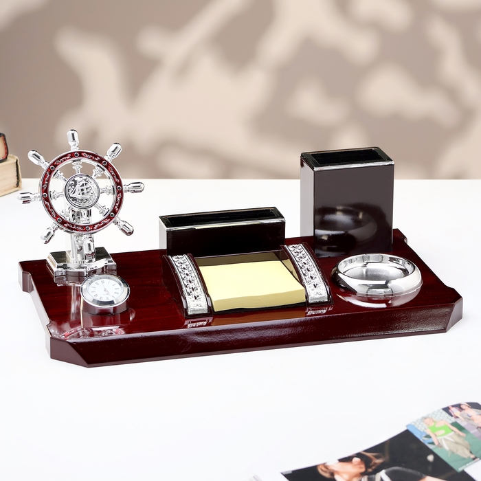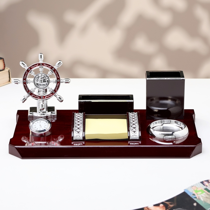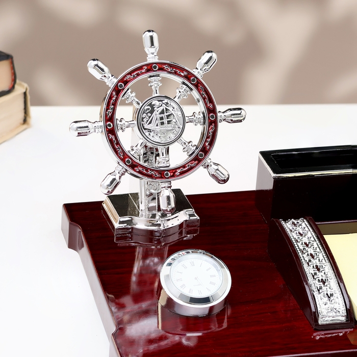 Набор настольный 6в1 (часы, блок д/ бумаги,каранд-ца, визитица,штурвал,скреп-ца ) 40*20*15см